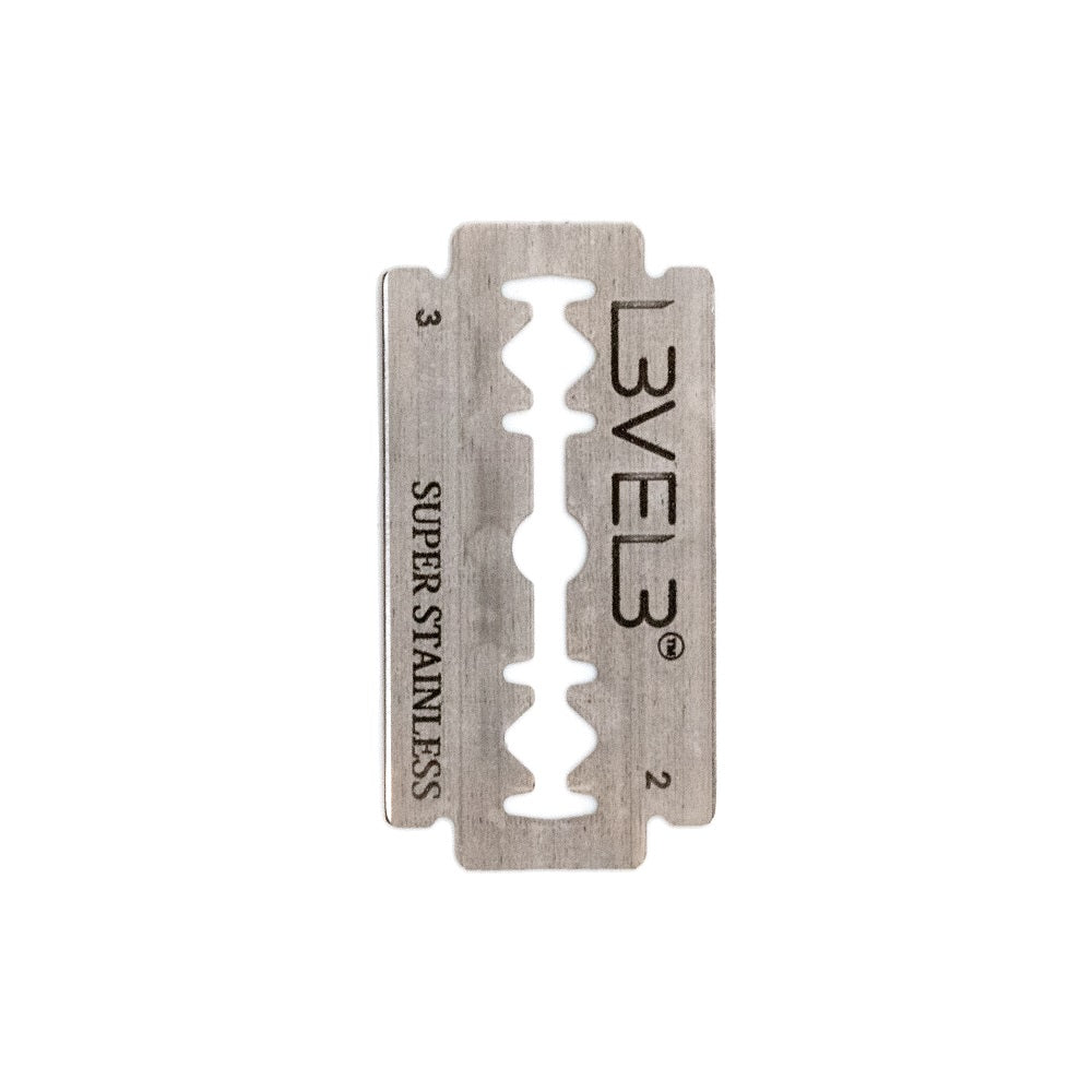 Las hojas de acero inoxidable de doble filo LEVEL3 son de primera calidad y se adaptan a todas las màquinas de afeitar doble hoja.