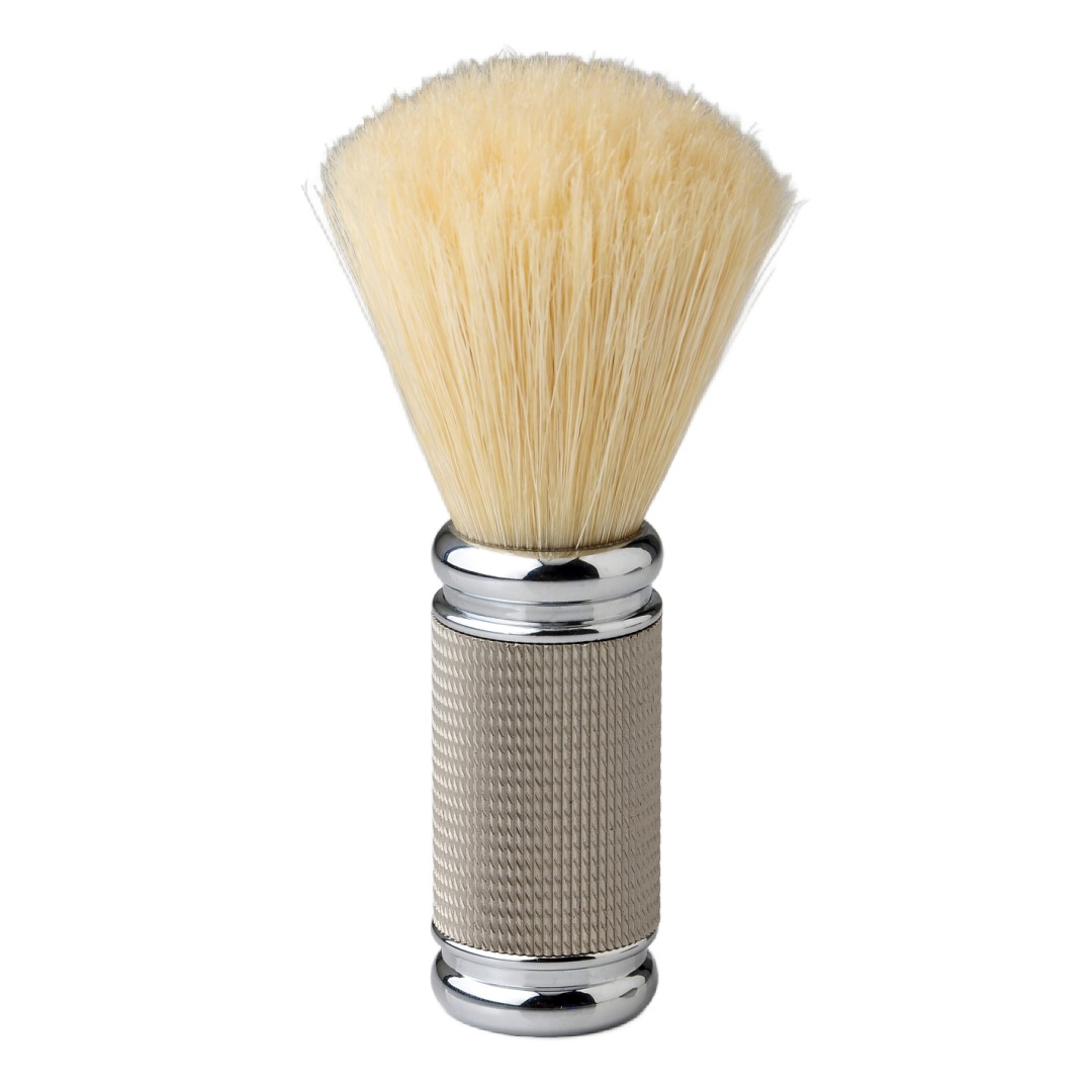 - Una brocha de gran calidad, fabricada a mano siguiendo un proceso artesanal. Su mango ergonómico de latón sólido con acabado Premium Chrome texturizado, su nudo meticulosamente diseñado y su peso ideal le permitirán una experiencia de afeitado agradable y moderna.