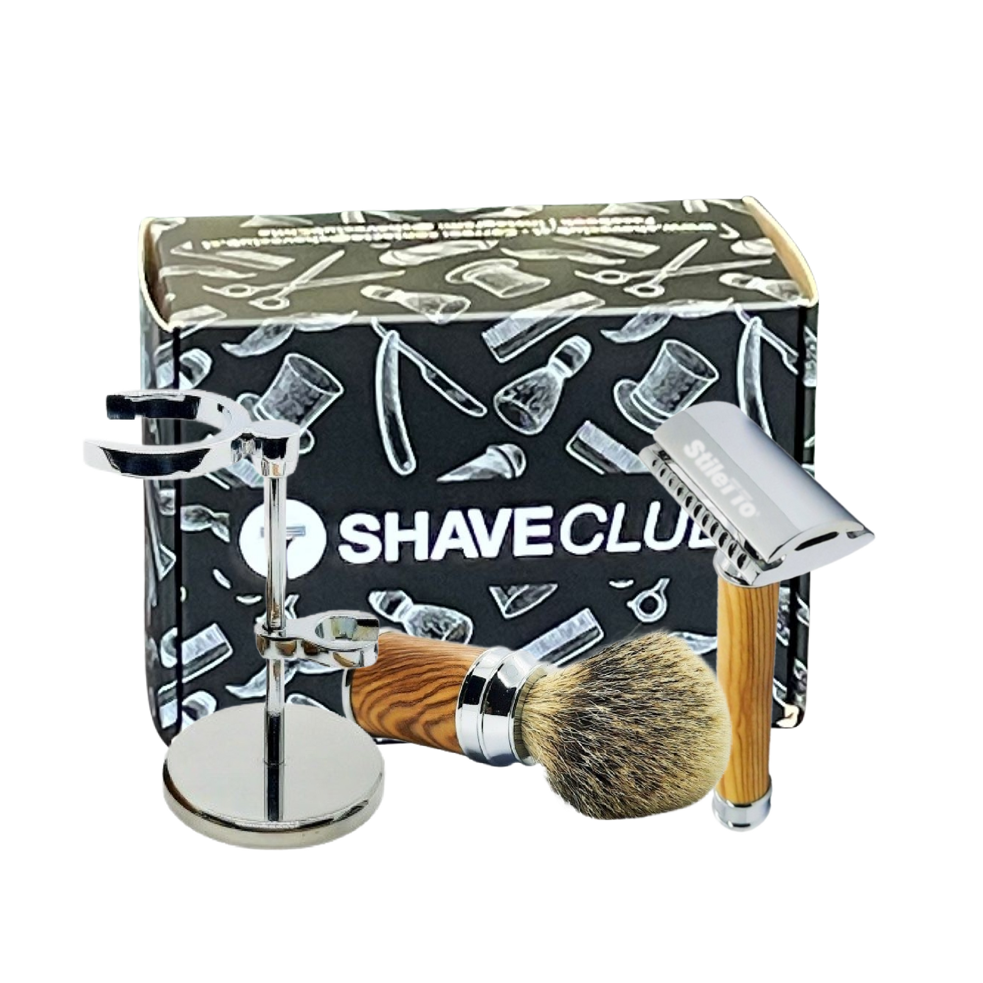 El set ST12518 de Stiletto presentado en una elegante caja de ShaveClub contiene: