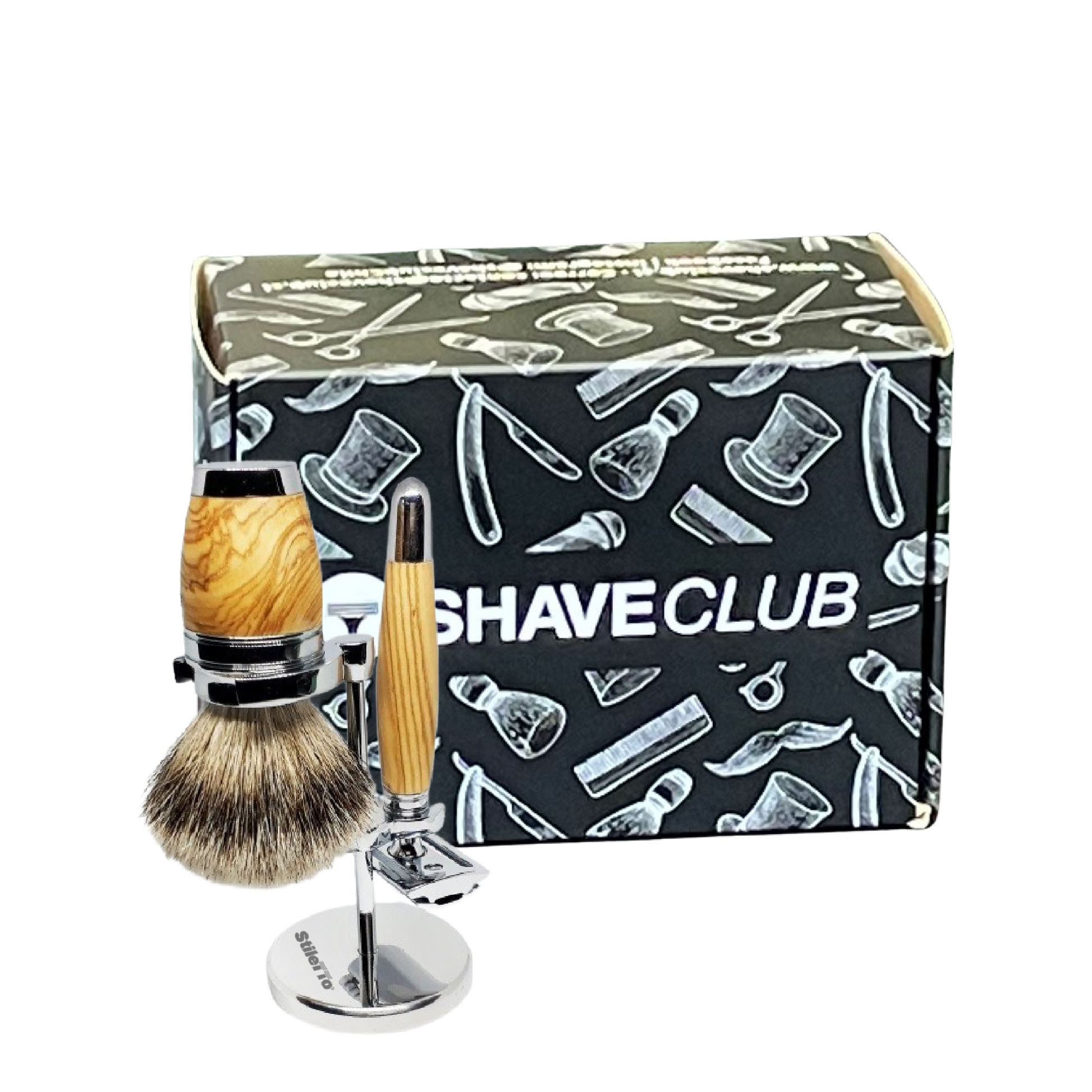 El set ST12520 de Stiletto presentado en una elegante caja de ShaveClub contiene: