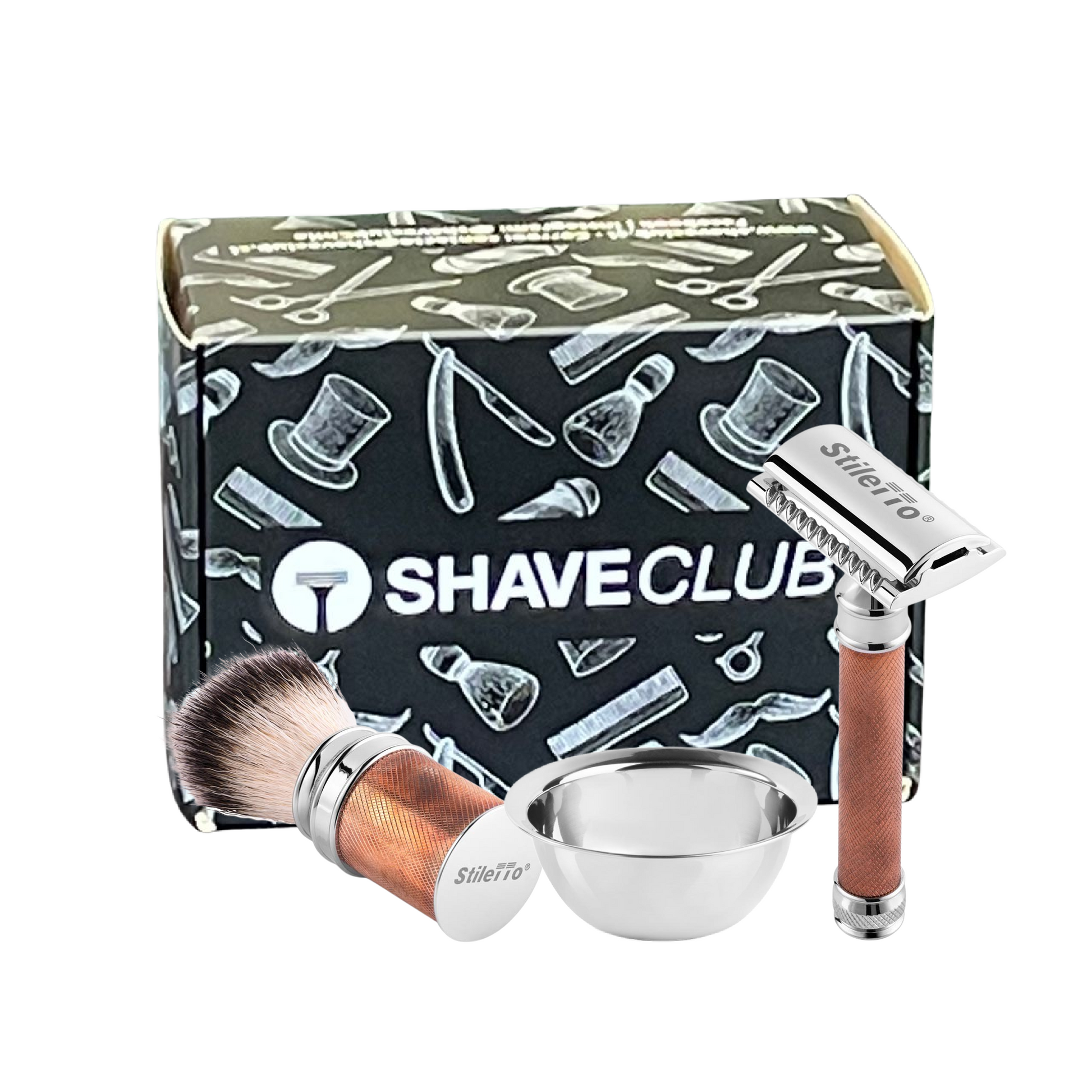 El set ST12527 de Stiletto presentado en una elegante caja de ShaveClub contiene: